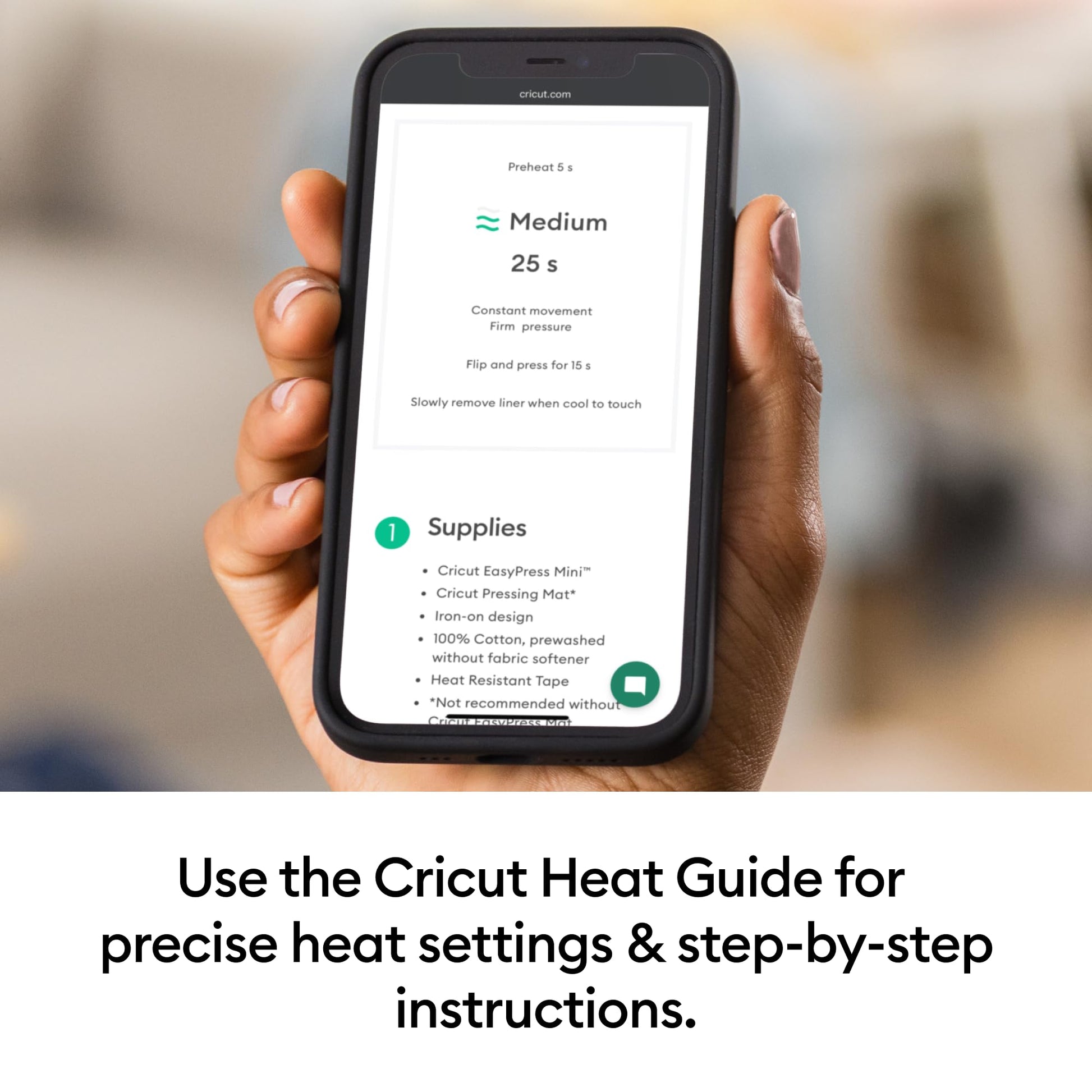 - EFFORTLESS AND ACCURATE — Cycle through 3 heat settings for every iron-on (HTV), Infusible Ink and sublimation project. A comfortable hand and precision tip offer supreme control and accuracy, and our user-friendly Cricut Heat Guide provides precise time & temperature settings and step-by-step pressing instructions